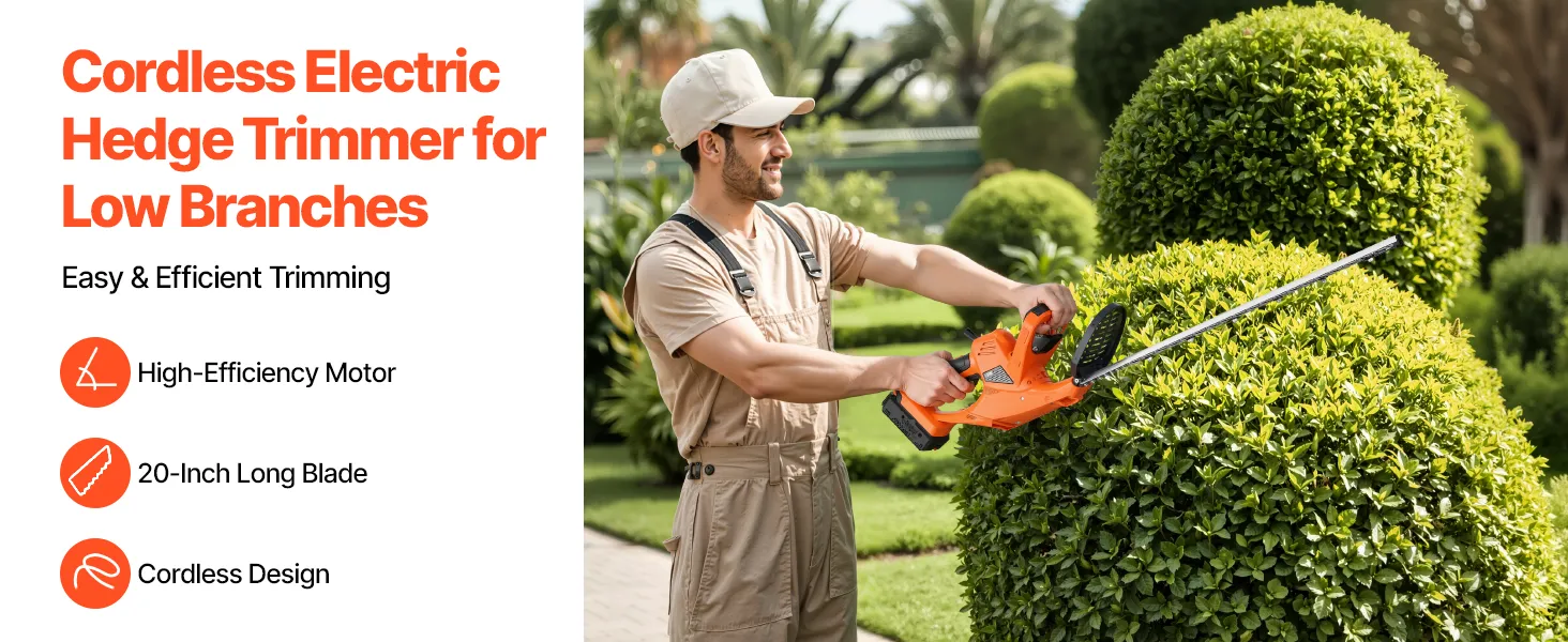 Taille-haie électrique sans fil VEVOR, batterie 20 V 2 A, lame double action 20 pouces