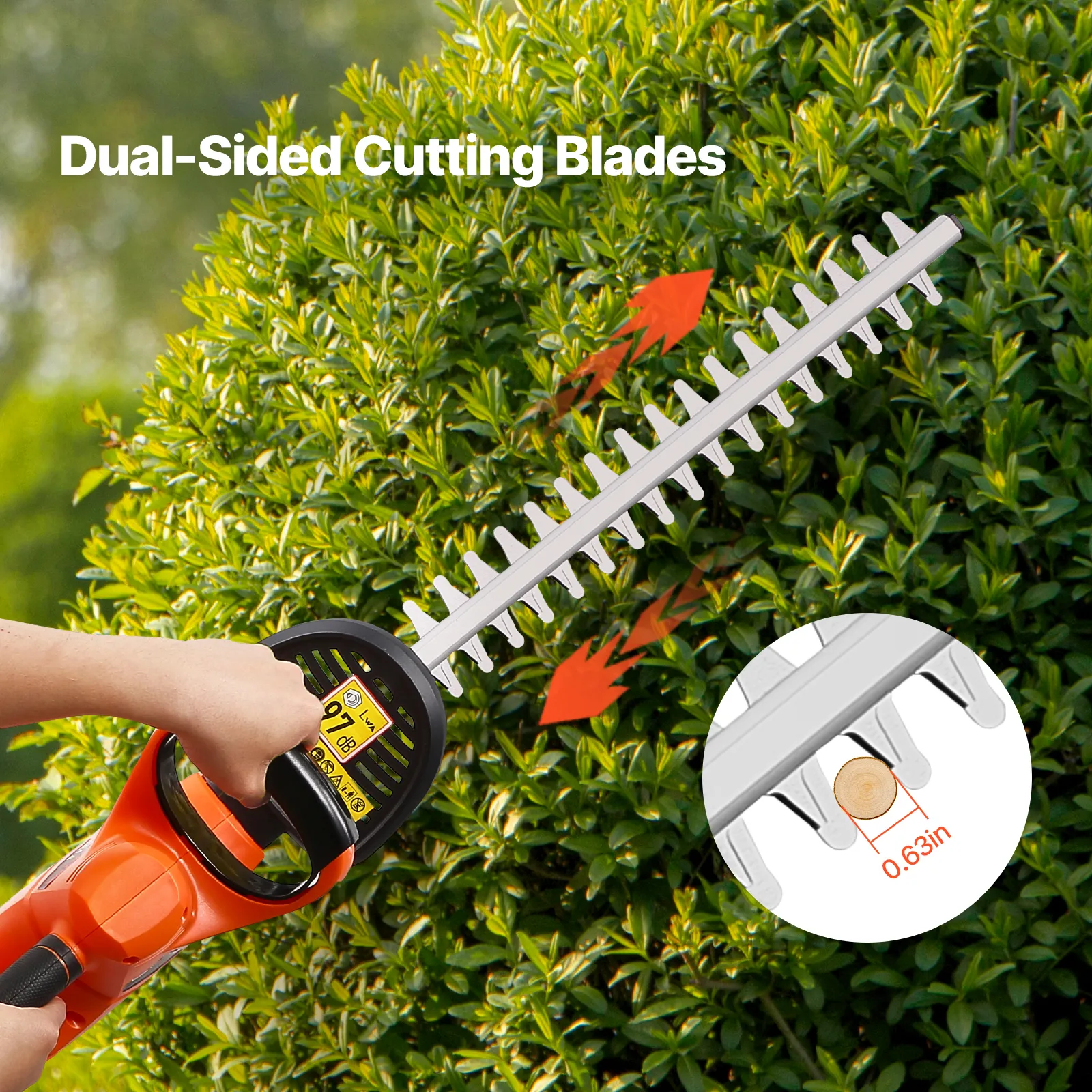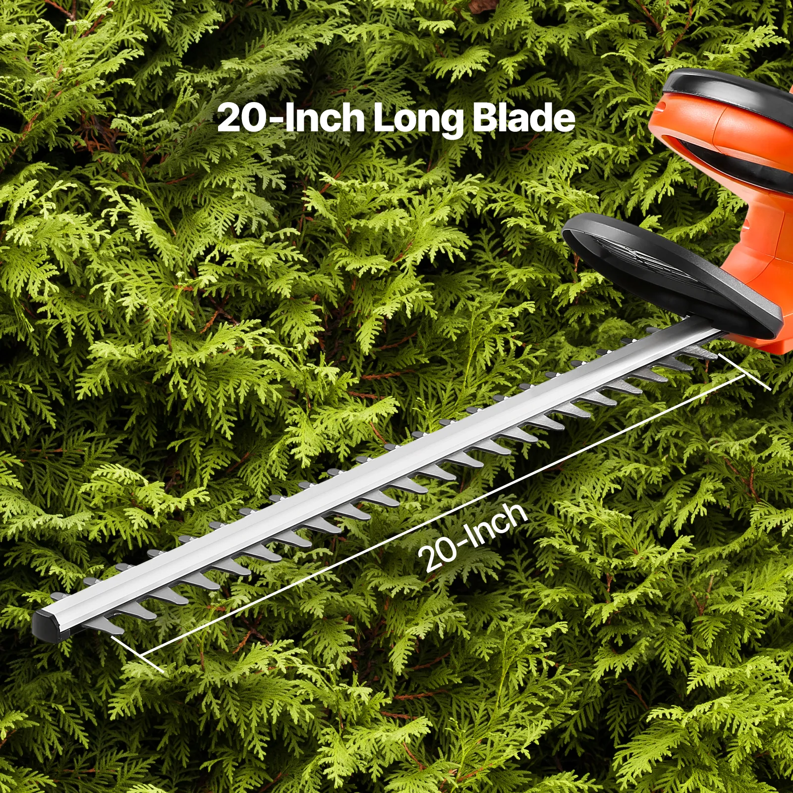 - Puissant pour une coupe facile des branches : équipé d'une lame de 20 pouces et de dents de coupe double face, ce taille-haie électrique coupe des branches jusqu'à 0,63 pouces, augmentant l'efficacité de la coupe et manipulant facilement les branches épaisses.